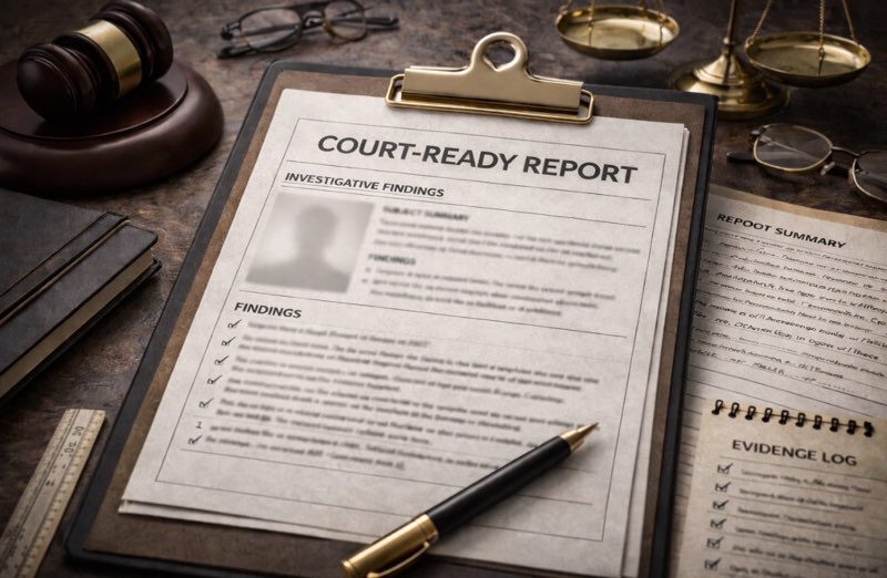 Our court-ready investigative reports are formatted to meet professional legal standards and provide attorneys with factual, well-organized summaries of findings. Each report includes verified timelines, evidence listings, and investigative conclusions, all presented in a clear, objective, and defensible format. We ensure that our documentation is both comprehensive and courtroom-ready, simplifying complex findings into actionable insights.